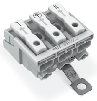 Leuchtenanschlussklemme Drücker extern mit PE-Schraubkontakt 3-polig Leuchtenseite: für eindrähtige Leiter Inst.-Seite: für alle Leiterarten max