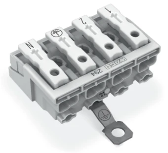 Leuchtenanschlussklemme Drücker extern mit PE-Schraubkontakt 4-polig Leuchtenseite: für eindrähtige Leiter Inst.-Seite: für alle Leiterarten max