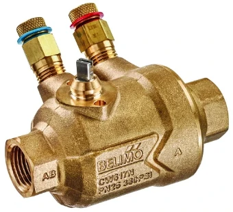 C215QPT-DRegelkogelkraan, drukonafhankelijk 2-weg met meetpoorten, binnendraad Rp, 1/2 inch, DN15, PN25, messing, fabricaat Belimo
