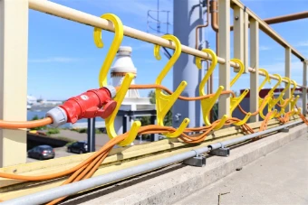 De Cablesafe CS-12-DOUBLE-Y-FR-UV Veiligheidshaak is een stevige S-haak, ontworpen voor het veilig gescheiden ophangen van kabels en leidingen. Door de dubbele haak wordt het mogelijk om bijvoorbeeld elektrische kabels en waterleidingen gescheiden op te hangen met een product. Deze haak is gemaakt van robuust geel glas versterkt PBT en is UV gestabiliseerd, wat zorgt voor hoge zichtbaarheid en een lange levensduur. Het S-haakontwerp biedt een eenvoudige en veilige manier om kabels te beheren, wat het risico van struikelgevaar en schade aan kabels en leidingen vermindert. De haak is ideaal voor gebruik in industriële omgevingen, zoals werkplaatsen, magazijnen en elektrische installaties.