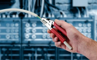 Striptang Kaiman voor kabels voor vochtige ruimtes met een diameter van 12 mm, bijv. 7 x 1,5 mm2 of 5 x 2,5 mm2, instelbare snijdiepte, zeer geschikt voor werkzaamheden op moeilijke toegankelijke plaatsen (bijv. schakelaardozen)