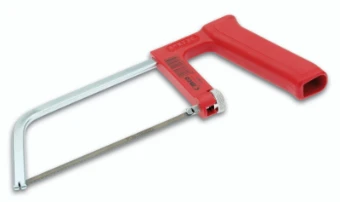Zakzaag Puk Vario 150 innovatieve kleinezaagbeugel van platstaal 10 x 5 mm, hoogglanzend verzinkt, met ergonomisch met glasvezel versterkte kunststof greep, blad spannen met een verzonken kartelschroef. 65 mm hoge zaagruimte. In twee verschillende lengten, telkens met universeel zaagblad