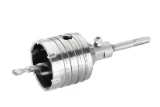 Klopboorkronen, De 6 met zilver gesoldeerde, exact geslepen beitels hebben ook in harde materialen een lange levensduur. De geharde boorkroon met M16 binnendraad en geoptimaliseerde rondloop is uitstekend geschikt voor beton, steen, metselwerk, klinkers, bakstenen en lichte bouwmaterialen. Schacht als 6-kant- of SDS-plus-variant. Slijtvaste hardmetalen tanden, gegroeflast, zorgen voor max. stabiliteit. Met verwisselbare centreerboor geschikt voor gebruik met lichte slag (materiaalafhankelijk), nauwkeurig inbrengen van schakelaar-/verdeeldozen mogelijk.