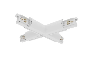 Lytespan Round Track accessory, X-feed connector. Polycarbonate body, copper alloy contacts. White.