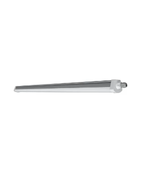 Vochtbestendig armatuur, doorbedraad (L, N, E). Productkenmerken: Hoog lichtrendement: tot 120 lm/W. IP-code: IP66. Lichtstraalhoek: 120°. Doorvoerbedrading 3x1,5mm² reeds geïnstalleerd. Behuizing van polycarbonaat. Productvoordelen: Gelijkmatig verdeeld licht. Energiebesparing van maximaal 50% (vergeleken met armaturen die fluorescentielampen gebruiken). Eenvoudige installatie aangezien montagebeugels vrij op het armatuur kunnen worden geplaatst. Gemakkelijke toegang tot elektrische terminal dankzij eindkappen met draai- en vergrendelmechanisme. Zonder gereedschap elektrische aansluiting door drukknopconnector. 5 jaar garantie. Toepassingsgebieden: Ideaal voor industriële- en opslagfaciliteiten. Autoparkeerplaatsen en onderdoorgangen. Garages. Werkplaatsen, assemblagelijnen. Technische uitrusting: Roestvrij stalen klemmen met inbegrepen veiligheidsschroeven. Montageaccessoires inbegrepen (ophangkit, diefstalbeschermingskit). Veiligheidsadvies: Alle elektrische aansluitingen moeten door een installateur worden gemaakt.. Let op, risico op elektrische schokken..