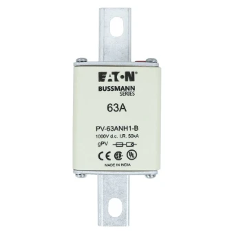 Eaton Bussmann Photovoltaic Fuses FUSE 63A 1000V DC PV SIZE 1 BOLTED TAG Zekering, hoge snelheid, 63 A, DC 1000 V, NH1, gPV, UL PV, UL, IEC, dual indicator, bolted tags
