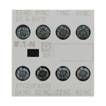 Hulpcontactblokje, met onderling vergrendelde tegenoverliggende contacten. Schakelelementen volgens EN 50005. Versie E combinaties komen overeen met EN 50011 en hebben de voorkeur. De DC bekrachtigde magneetschakelaar DILA(C)-22 mag alleen worden gecombineerd met 2-polige hulpcontacten. Functie: voor standaard toepassingen, 4-polig. Aansluittechniek: schroefklemmen, Nominale bedrijfsstroom AC-15 220 V 230 V 240 V: Ie= 4 A, nominale bedrijfsstroom AC-15 380 V 400 V 415 V: Ie= 4 A, contacten no = normaal open: 1 no, contacten nc = normaal gesloten: 3 nc, type montage: Frontbevestiging, voor gebruik met: DILA(C)…, DILM(C)7…, DILM(C)9…, DILM(C)12…, DILM(C)15…