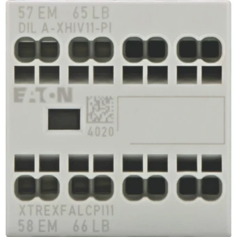 Hulpcontactblokje, functie: voor standaard toepassingen, 2-polig, aansluittechniek: Push-in klemmen, Ith 16 A, nominale bedrijfsstroom AC-15 220 V 230 V 240 V: Ie= 4 A, nominale bedrijfsstroom AC-15 380 V 400 V 415 V: Ie= 4 A, contacten noe: no voorijlend: 1 noe, contacten ncl = nc naijlend: 1 ncl, type montage: Frontbevestiging, voor gebruik met: DILA…-PI, DILM7…-PI, DILM9…-PI, DILM12…-PI, DILM15…-PI, DILM17…-PI, DILM25…-PI, DILM32…-PI, DILM38…-PI, DILMP20…-PI, DILMP32…-PI, DILMP45…-PI, DILM8…-PI, DILM11…-PI, DILM14…-PI, type: Hulpcontact voor frontmontage