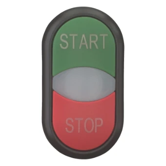 Dubbele drukknop, +signaallamp, groen START/wit/rood STOP