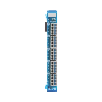 Analoge I/O-module met 6 +/-10 V/16-bits ingangen, een KTY10 / PT1000 temperatuur ingang (optioneel een tweede temperatuur ingang), en één 10 V/15 mA referentiespanningsuitgang.
