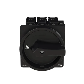Hoofdschakelaar, assortiment: Hoofdschakelaar, werkschakelaar, familie type: P3, stopfunctie: STOP-functie, met zwarte draaigreep en borgring, informatie over geleverde apparatuur: hulpcontact of nulleider gemonteerd door gebruiker, 3-polig, vergrendelingsmogelijkheid: Vergrendelbaar in de stand 0 (uit), beschermingsgraad: Front IP65, uitvoering: achterbouw, motorvermogen AC-23A, 50 - 60 Hz 400 V: P = 55 kW, nominale ononderbroken stroom: Iu = 100 A, normen en bepalingen: IEC/EN 60947, VDE 0660, IEC/EN 60204, CSA, UL, lastscheider conform IEC/EN 60947-3, NEMA12