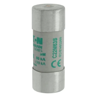 zekering, zekeringelement, laagspanning, 63 A, AC 690 V, 22 x 58 mm, aM, IEC, met slagpin, cilindrisch, IEC 60269-2, afschakelvermogen 80 kA