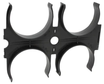 De 4-delige afstandhouder is gemaakt van polyolefine, in zwart (RAL 9005). Deze afstandhouder wordt gebruikt voor exacte montageafstanden bij de opbouw van Kabuflex-buisverbindingen. De montageafstand tussen de afstandhouders bij de installatie met Kabuflex® S dient ca. 1,5 m te bedragen. Bij de installatie met Kabuflex® R of Kabuflex® R plus moet de afstand worden verkleind.