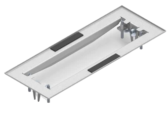 Rechthoekig vloerinbouwframe van roestvrij staal bestaande uit een basis- en inbouwframe voor gebruik in de profi-air classic-luchtdoorlaatbox of profi-air tunnel luchtdoorlaatbox. In hoogte verstelbaar voor vloerbedekkingen tot max. 30mm. Bruikbaar voor toevoer- en retourlucht. Alleen geschikt voor vloerinbouw. Het starline-vloerinbouwframe is bedoeld als basis voor de starline-designroosters AVANTGARDE en LINE.