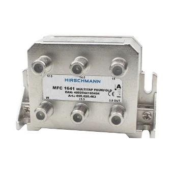 De MFC 1641 is een viervoudige multitap met oplopende demping op de aftakuitgangen van 12,5 tot 15 dB en 3,8 dB demping op de doorlusuitgang. Deze tap heeft hoge isolatie tussen de uitgangen en goede afscherming om de kwaliteit van het signaal te waarborgen. Onze taps zijn uitgerust met een aansluiting om te aarden. Al onze taps en verdelers ondersteunen retourverkeer. Ongebruikte uitgangen dienen afgesloten te worden met een afsluitweerstand.