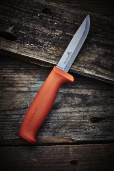 Hultafors mes HVK is ontwikkeld en aangepast om te voldoen aan de wensen van vakmensen, met een lemmet van Japans messenstaal. Dit mes is uitgerust met een unieke functionaliteit. Het holster kan aan de knoop uw werkkleding of riem worden vastgeklikt. Hierdoor kan zorgeloos worden doorgewerkt zonder dat het holster loskomt. Het lemmet is gemaakt van 2,5 mm carbonstaal, dat is gehard tot 58–60 HRC.