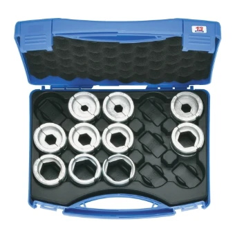 13-serie inzetstukkenset t.b.v. aluminium. Geleverd in kunststofkoffer met 10 inzetstukken voor de kwadraturen 10 t/m 300 qmm.