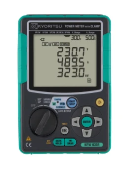 De Kyoritsu 6305 is een driefasen vermogenslogger met bluetooth communicatie, voor verbinding met een Android apparaat. Tevens kan de meter waardes opslaan in zijn grote interne geheugen van 2GB die via USB naar de PC uit te lezen zijn.