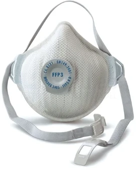 Filtermasker Moldex-3405 FFP3.Filtermasker Moldex-3405 FFP3 R D, EN149:2001. Tegen alle schadelijke fijnstoffen, rook en op water en olie gebaseerde nevels/aërosolen. De ActivForm afsluiting en DuraMesh buitenschaal zorgen voor een stevig masker en een veilige en comfortabele aansluiting op het gelaat. Het Klima uitademventiel zorgt voor een minimale uitademweerstand en voorkoming van condens vorming in het masker. Door de wasbare Kraton afdichting is het masker geschikt voor hergebruik. 100% PVC-vrij.