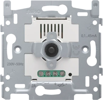 Sokkel voor een draaiknopdimmer voor systemen met 1-10 V stroomsturing. Geschikt voor het schakelen en regelen van dimbare elektronische voorschakelapparatuur (EVSA) voor fluorescentieverlichting, compacte fluorescentieverlichting en dimbare ledverlichting. Een afwerkingsset (XXX-31000) en afdekplaat in een kleur naar keuze moeten afzonderlijk besteld worden.