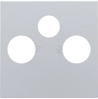 Centraalplaat met 2 enkelvoudige coaxaansluitingen en boven een satellietaansluiting. Afwerkingskleur: sterling coated.