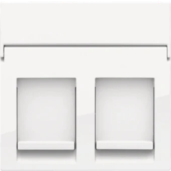 Centraalplaatje voor 2 RJ outlets in een vlakke uitvoering. De centraalplaat bevat een transparant tekstveld waarin je eenvoudig iconen of teksten kan aanbrengen. Afwerkingskleur: bright white.
