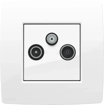 Centraalplaat met 2 enkelvoudige coaxaansluitingen en boven een satellietaansluiting. Afwerkingskleur: bright white.