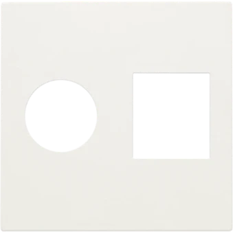 Centraalplaat voor enkelvoudige coaxaansluiting en netwerkaansluiting. De eerste ingang is bestemd voor een EDU TV-aansluiting. De tweede is bestemd voor een netwerkaansluiting. Afwerkingskleur: white