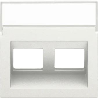 Centraalplaatje voor 2 RJ outlets in een schuine uitvoering. Het centraalplaatje heeft een transparant tekstveld waarin je eenvoudig teksten en iconen kan inbrengen. Afwerkingskleur: white.