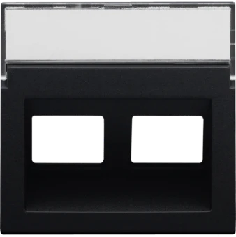 Centraalplaatje voor 2 RJ outlets in een schuine uitvoering. Het centraalplaatje heeft een transparant tekstveld waarin je eenvoudig teksten en iconen kan inbrengen. Afwerkingskleur: black coated.