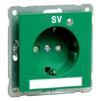 Wandcontactdoos SCHUKO® met insteekcontacten, controle-LED, opdruk ”SV” en groene sokkel