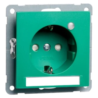 Randaarde wandcontactdoos NOVA met controle-LED en groene sokkel 2polig, 16 A 250 V, met steekklemmen, met groene LED als spanningssignalering, 230 V/1 mA, levensduur LED ca. 10 jaar, met groene centraalplaat voor combinaties