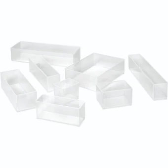 Met de inzetbakjes van raaco kunt u verschillende opbergoplossingen creëren voor kleine onderdelen – gemakkelijk, snel en effectief. Of u nu dozen, gereedschapsbakken, laden of iets heel anders wilt inrichten, met de praktische inzetbakjes brengt u orde en overzicht aan. De inzetbakjes zijn beschikbaar in allerlei formaten en in drie hoogtes, en kunnen naar wens worden gecombineerd en verwisseld. Zo creëert u complete opbergoplossingen die op specifieke taken zijn toegespitst. De inzetbakjes zijn stevig en bestendig tegen een groot aantal chemicaliën. En dankzij de hoogwaardige, doorzichtige kunststof ziet u in één oogopslag waar alles ligt. De handige inzetbakjes zijn los verkrijgbaar of in een handige tray. De trays hebben een raster dat de inzetbakjes op de plaats houdt. Plaats de trays in een keukenlade of gebruik de inzetbakjes in de lade van een ladenkast, in de vakkendozen, Compact gereedschapskoffer of in de raaco bedrijfswageninrichting - de inzetbakjes blijven altijd op de ju