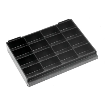 Halfhoog inzetbakje met 5 vakken, geschikt voor het indelen van de laden. De ESD-serie is speciaal ontwikkeld voor het opbergen van materialen die onder spanning hebben gestaan. Alle metalen voorwerpen in deze serie zijn voorzien van een aardedraad waardoor al mogelijke elektriciteit direct weg wordt gevoerd en de kunststof onderdelen zijn een combinatie van kunststof en carbonvezels
