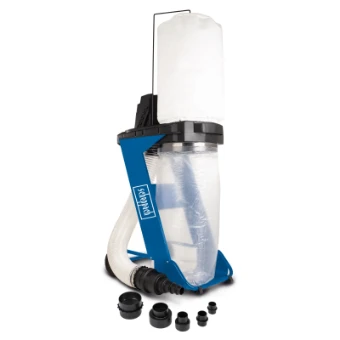 Het DC500 afzuigsysteem van Scheppach kan op veel verschillende machines worden aangesloten. Met een afzuigvermogen van 1150 m³/h zuigt het gedegen grote hoeveelheden spanen op in de opvangzak van 75 liter. Zo blijft de werkplaats zo goed als stofvrij bij het zagen, slijpen, schuren en schaven.
