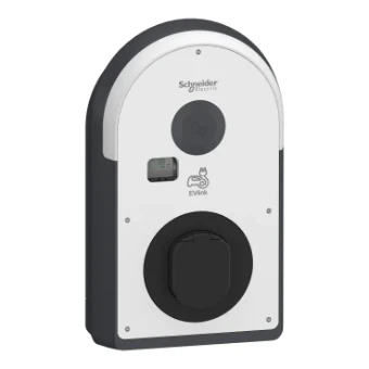 Dit EVlink Pro AC product is een laadstation voor elektrische voertuigen dat aan de muur bevestigd kan worden. Het laadstation voldoet aan de IEC61851-1 norm. Hij kan ook op de vloer worden geplaatst, vastgezet worden op een sokkel, of geïntegreerd worden in een kit-behuizing. Zowel de sokkel als de kit-behuizing moeten afzonderlijk worden besteld. Hij kan zowel binnen als buiten worden geïnstalleerd. De IP-beschermingsgraad is IP55. De IK-beschermingsgraad is IK10. De gebruikstemperatuur ligt tussen -30°C en 50°C. De opslagtemperatuur ligt tussen -40°C en 80°C. Het uitgangstype is een T2 contactdoos met klep (T2S) dat bevestigd is aan de voorzijde van het station. Alle contacten van de T2S contactdoos zijn verzilverd om oververhitting te voorkomen. Het nominale uitgangsvermogen is 22 kW. Hij wordt geleverd in driefase (3P+N). De nominale laadstroom bedraagt 32A bij 380V tot 415VAC met een frequentie van 50Hz tot 60Hz. Het kan worden gebruikt met een TT, TN-S, of TN-C-S aardingssystee
