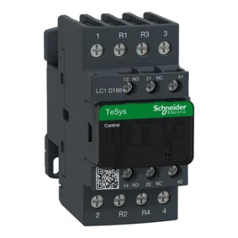 TeSys D - Contactor 4M+2V - Voor niet-inductieve tot 32A/690V AC-1 belasting. Voorzien van een 48V 50/60Hz AC-spoel, ingebouwde hulpcontacten 1NO+1NC (NC-spiegelgecertificeerd), aansluiting met schroefklemmen. Voor operationele snelheden tot 3600 cycli/uur en omgevingen tot 60°C, biedt deze een hoge betrouwbaarheid en duurzaamheid. Compact (45 mm breed), DIN-rail montage of schroefbevestiging. Multi-standaarden gecertificeerd (IEC, UL, CSA, CCC, EAC, Marine), Green Premium-conform (RoHS/REACh).