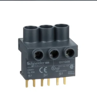 Dit TeSys GV klemmenblok is geschikt voor aansluiting op een DIN-rail en is voorzien van 3 fasen, 63A/690V, voor de voeding van de stroomrailsets GV2G. Dit product kan rechtstreeks op de bovenste klemmen van de door de stroomrailsets aangesloten apparaten worden geplaatst. Aansluiting op de voedingskabel via schroefconnectoren. Voorzien van het Green Premium ecolabel (RoHS/REACh).
