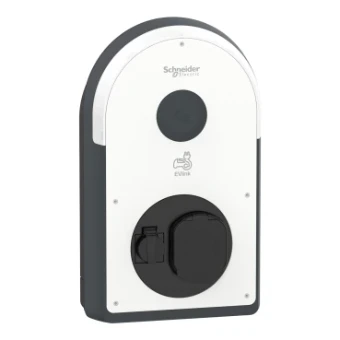 Dit EVlink Pro AC product is een laadstation voor elektrische voertuigen dat aan de muur bevestigd kan worden. Het laadstation voldoet aan de IEC61851-1 norm. Hij kan ook op de vloer worden geplaatst, vastgezet worden op een sokkel, of geïntegreerd worden in een kit-behuizing. Zowel de sokkel als de kit-behuizing moeten afzonderlijk worden besteld. Hij kan zowel binnen als buiten worden geïnstalleerd. De IP-beschermingsgraad is IP55. De IK-beschermingsgraad is IK10. De gebruikstemperatuur ligt tussen -30°C en 50°C. De opslagtemperatuur ligt tussen -40°C en 80°C. Het uitgangstype is een T2 contactdoos met klep (T2S) met een TF contactdoos, bevestigd aan de voorzijde van het laadstation. Alle contacten van de T2S contactdoos zijn verzilverd om oververhitting te voorkomen. Het nominale uitgangsvermogen is 7,4 kW met de T2S-contactdoos en 2,3 kW met de TF-contactdoos voor huishoudelijk gebruik. De T2S contactdoos wordt geleverd in driefase (3P+N), en de nominale laadstroom is 32A bij 380V