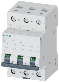 Miniature circuit breaker 400 V 10kA, 3-pole, C, 63 A Miniature circuit breaker SENTRON 5SL for fail-safe short-circuit and overload protection for standard applications in residential and non-residential buildings. Assembly and disassembly of the device without tools. Simple wiring of the infeed through the rear busbar. The 5SL miniature circuit breakers are available in 1-, 2-, 3-, 4-pole and 1+N- and 3+N-pole versions and in further special types. The extensive accessories, such as the auxiliary switch, allow the functions to be extended in a wide variety of ways. Simply safe with the protection devices from SENTRON.