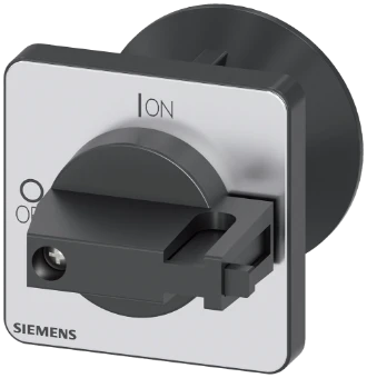 selector switch, black 48x48 mm Front plate mounting Central hole mounting 22.5mm with coupling part for shaft 6x6 mm, accessory for Load disconnector 3LD3 Main and EMERGENCY OFF switch SENTRON 3LD3 for the safe shutdown of loads in many areas, e.g. for three-phase motors, air conditioning and ventilation systems, in control or switchgear cabinets, especially for small machines such as saws, compressors, pumps, concrete mixers, drilling machines, milling machines, or woodworking machines. Modular design, fast and easy mounting of auxiliary switches, N-PE terminal, or 4th pole. Optimum disconnection of 16 A of 63 A from the power supply due to the locking capability of the rotary operating mechanism. Versatile thanks to international approvals. One mechanical frame size for five electrical frame sizes. The 3LD main and EMERGENCY-OFF switches are available in a wide range of variants for front mounting, mounting plate, DIN rail, or installation in distribution boards, optionally with direct or door-coupling rotary operating mechanism. 3LD2 is also available in variants for DC applications. Main and EMERGENCY-OFF switch 3LD - End-to-end safety for users and systems.