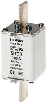 SITOR fuse link, with blade contacts, NH1, In: 160 A, gS, Un AC: 690 V, Un DC: 250 V, front indicator SITOR fuse link SENTRON 3NE1 . SENTRON circuit protection devices - A safe choice.