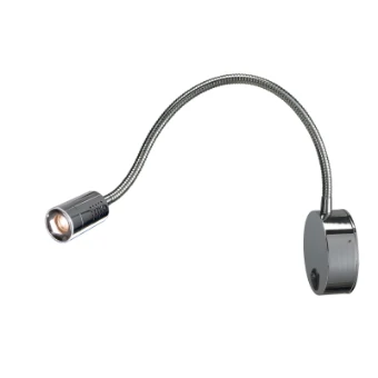 Led-displaylamp voor wandmontage van de DIO FLEX PLATE-serie waarbij rozet en kop via een flexibele arm verbonden zijn. Door de gemonteerde powerled plus de schakelaar is de individueel verstelbare lamp voor vele toepassingen geschikt. De in meerdere lichtkleuren beschikbare lamp wordt via de ingebouwde led-driver direct op 230 V aangesloten. Als alternatief is een versie voor hoogspanningshalogeenlamp beschikbaar. Deze lamp bevat ingebouwde ledlampen. De ledlampen kunnen in de lamp niet worden vervangen.