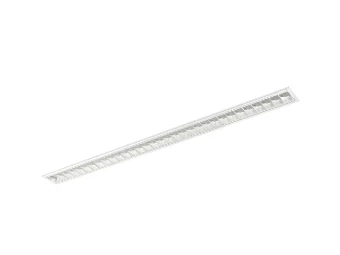 Ceiling recessed LED Linear luminaire with Louvre + Micro Prismatic Optic, Dimensions: 1154mm x 90mm x 91mm, Direct, White Body, 1-10V Dimmable, Warm White LED (3000K), 3200lm, 27W, 119lm/W efficacy, CRI>80, 3 SDCM (3-step MacAdam ellipse), Low LED Flicker (+/-5%), UGR<19, L90B10 at 50,000 hours, Electric Class1, Glow Wire Test 850°C, Can be covered with building insulation of Glass wool type