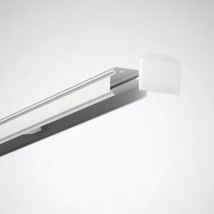 eindafdekking voor het afsluiten van een lichtlijn van het type E-Line 7651 IP20. Met aan de kopse zijde 2 naar binnen gewerkte voorgeperforeerde uitbreekopeningen voor de voeding. Uit kunststof, kleur: wit.