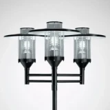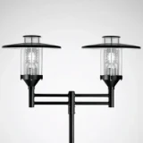 Decoratieve lantaarn met leds met indirecte component voor opzetmontage. Met intelligent label voor het snel oproepen van armatuurgegevens door middel van de QR-Code. Masttop Ø 76 mm. Kan door middel van afzonderlijk te bestellen reduceerstukken ook gemonteerd worden op masten met top Ø 60 mm. Passende mast op aanvraag. Optisch systeem uitgevoerd in multi-lens-technologie (MLT). Optisch systeem bestaande uit hoogefficiënte uv- en temperatuurbestendige lenzensystemen. Met rotatiesymmetrische brede lichtverdeling. Een afscherming voor inbouw achteraf aan de achterzijde/zijkant is te verkrijgen als afzonderlijk te bestellen toebehoren. Armatuurlichtstroom en lichtkleur vast, met stabilisatie van de lichtstroom aan het einde van de levensduur (CLO). Ledsysteem bestaande uit 3 ledmodules. Armatuurlichtstroom 2600 lm, aansluitvermogen 24 W, maximale lichtrendement van de armatuur 108 lm/W. Lichtkleur warm wit, kleurtemperatuur (CCT) 3000 K, Op aanvraag ook verkrijgbaar in Tunable White-uitvoering (2200 K – 4000 K). algemene kleurweergave-index (CRI) Ra > 70. Kleurplaatstolerantie (initial MacAdam) ≤ 5 SDCM. Andere LED-lichtkleuren op aanvraag verkrijgbaar. Gemiddelde opgegeven levensduur LCLO (tq 25 °C) = 100.000 h. De lichtbron kan vervangen worden overeenkomstig de eisen inzake ecologisch ontwerp (EU-Verordening 2019/2020). Uitvoeringen met drietraps schakelaar voor het instellen van verschillende lichtstromen in optie verkrijgbaar. Knipperen: Pst LM ≤ 1,0 bij volledige belasting. Armatuurbehuizing uit spuitgietaluminium, bovenkap van de armatuur uit corrosiebestendig aluminium, uiterst weerbestendig gepoederlakt. kleur zwart (vergelijkbaar met RAL 9005). Coating voor zeeklimaat op aanvraag. Armatuurbovenkap binnenzijde wit gepoederlakt. Afschermcilinder uit transparant zeer slagvast PMMA. Armatuurafdekking klikt vast in de onderhoudspositie als ze omhooggeschoven wordt. Mast beschikbaar op aanvraag. Beschermcategorie (EN 61140): II, beschermklasse (DIN EN 60529): IP23, Beschermklasse lampcompartiment: IP65. slagvastheid overeenkomstig IEC 62262: IK04. Toelaatbare omgevingstemperatuur (ta): 25 °C Windweerstandsoppervlak fw 0,470 m2. Gewicht: 11,0 kg. Aansluitkabel aangesloten bij levering. Lengte van de aansluitleiding: 6,0 m. Met elektronische transformator, schakelbaar Het hulpapparaat kan vervangen worden overeenkomstig de eisen inzake ecologisch ontwerp (EU-Verordening 2019/2020). Met aangesloten netsnoer van 6000 mm lang. Met geïsoleerd steunpunt voor de aardleiding. Het elektrisch blok met alle elektrische componenten kan zonder gereedschap vervangen worden. Stootspanningsvastheid Differential Mode / Common Mode: 6 kV / 10 kV. De armatuur voldoet aan de fundamentele eisen van de van toepassing zijnde EU-richtlijnen en de productveiligheidswet. Ze is voorzien van een CE-markering. Bovendien heeft een onafhankelijk controlebureau het ENEC-certificaat toegekend aan de armatuur. Armatuur nog verkrijgbaar 10 jaar, reserveonderdelen (LED-module, hulpapparaat, optisch systeem) 15 jaar na factuurdatum, onder voorbehoud van verdedigbare wijzigingen ten behoeve van de vooruitgang.