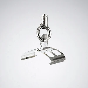 Ophangkral voor montage aan staaldraad. Uit roestvrij staal In combinatie met E06 en E07. Draadlengte traploos verstelbaar zonder gereedschap.