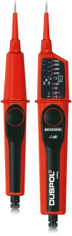 Duspol Analog Tweepolige Spanningstester De DUSPOL®-spanningstester onderstreept nog nadrukkelijker de deskundigheid van BENNING op het gebied van test-, meet en veiligheidstechniek Met de DUSPOL®-spanningstesters heeft u een veilig en innovatief product dat door een onafhankelijk test- en certificerings-instituut is getest en goedgekeurd Functionaliteit: • Veilige spanningstest tot 1000 V AC/DC • Trilalarm voor betrouwbare spanningsdetectie • Spanningstest met hoge weerstand zonder op een drukknop te drukken • Schakelbaar belastingscircuit, foutieve metingen door capacitieve en inductieve spanningen worden uitgesloten door het bewust inschakelen van de belasting met behulp van drukknoppen • Bewuste activering van een 30 mA aardlekschakelaar • Fasevolgordetest • Enkelpolige fasetest • Norm: DIN/EN 61243-3 (VDE 0682-401) • Lengte van de verbindingsleiding: ca. 1000 mm • Gewicht: ca. 250 g • Inclusief gebruiksaanwijzing