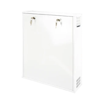 Metalen behuizing voor NVR en XVR, voorzien van dubbel slot met sleutel en tamperbeveiliging op de deur en de muur. Maximale afmetingen recorder: 485x470x95mm. Compatibel met koelventilator ACC01BOX.