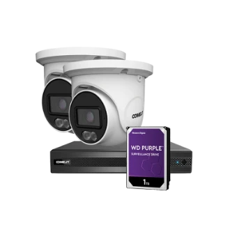 Deze voorgeprogrammeerde beveiligingskit biedt een eenvoudige en snelle installatie. De kit bevat een netwerk videorecorder die 4 IP-kanalen ondersteunt met PoE, een maximale resolutie van 6MP. De recorder heeft een bandbreedte van 40Mbps. Bediening op afstand is mogelijk via de Comelit CCTV-app en -software. De meegeleverde 1TB SATA harde schijf is speciaal ontworpen voor camerabewaking. Daarnaast bevat de kit twee Turret IP-camera's met een resolutie van 4MP, een vaste lens van 2,8 mm en een IR-bereik van 30 meter. Deze camera's bieden geavanceerde video-analysefuncties, zijn waterdicht (IP67) en voorzien van een ingebouwde microfoon. Deze kit is volledig NDAA-conform.
